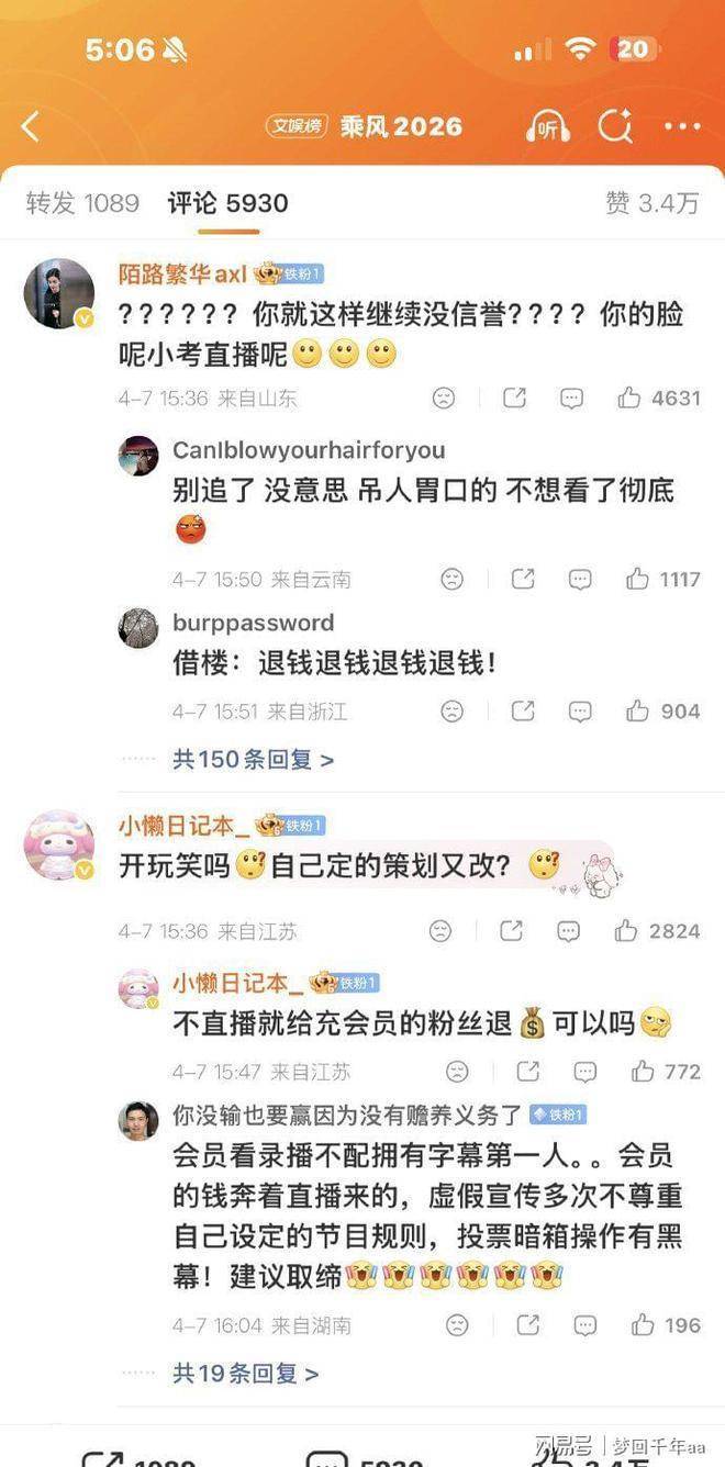 观众的愤怒不仅源于节目形式的变更,更在于对承诺的失望!许多观众为观看直播特意调整了个人安排,而节目组仅提前很短时间通知变更,被认为是对观众时间的极度不尊重。付费会员群体尤其不满,认为直播特权的缩水构成了权益受损!
